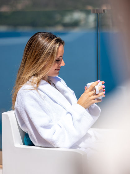 Lumineuses et spacieuses, les chambres RoofTop 100 et RoofTop 200 sont dotées de terrasses extra-larges entièrement équipées de salon extérieur, de table à déjeuner et surplombent le Golfe du Valinco.